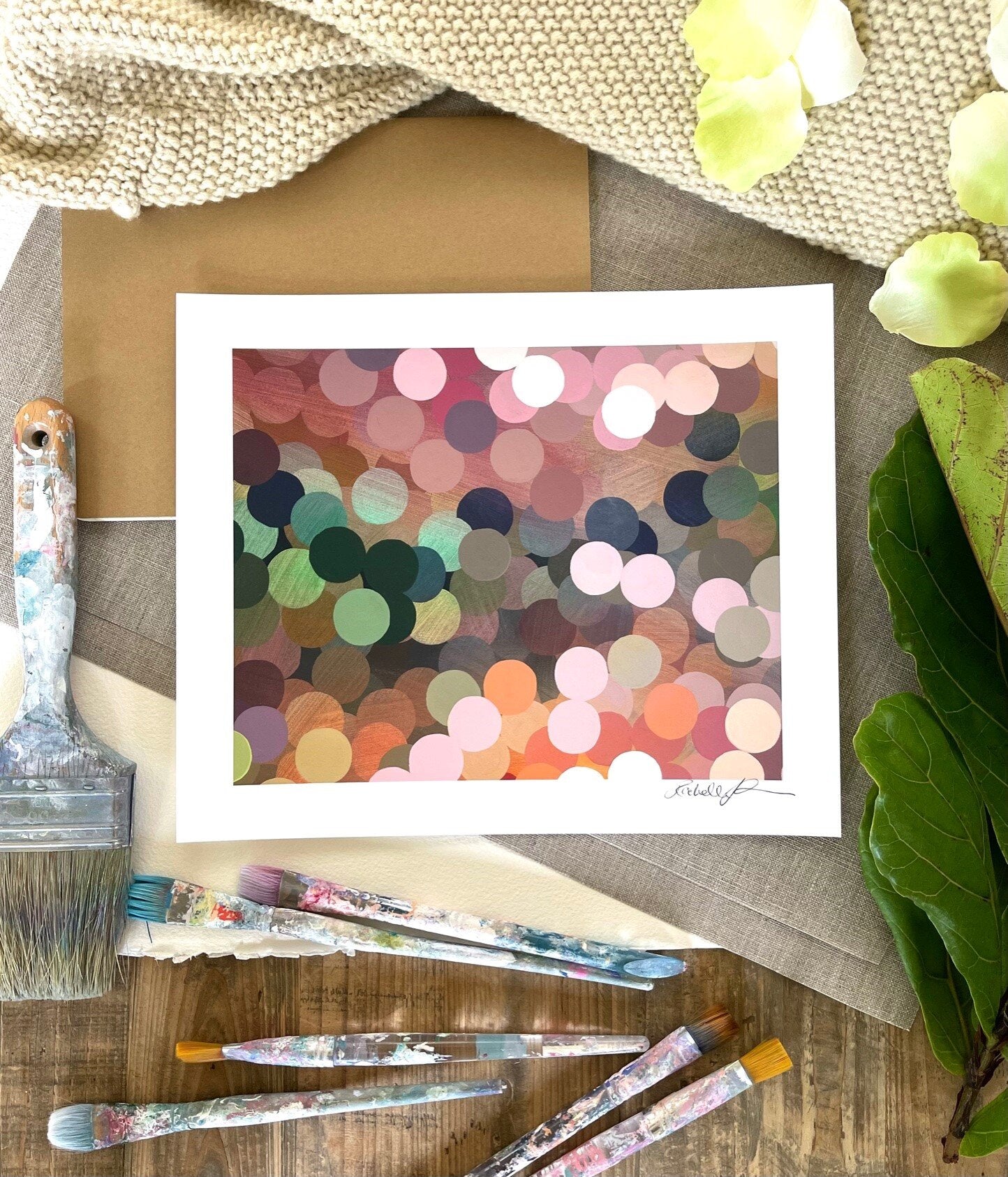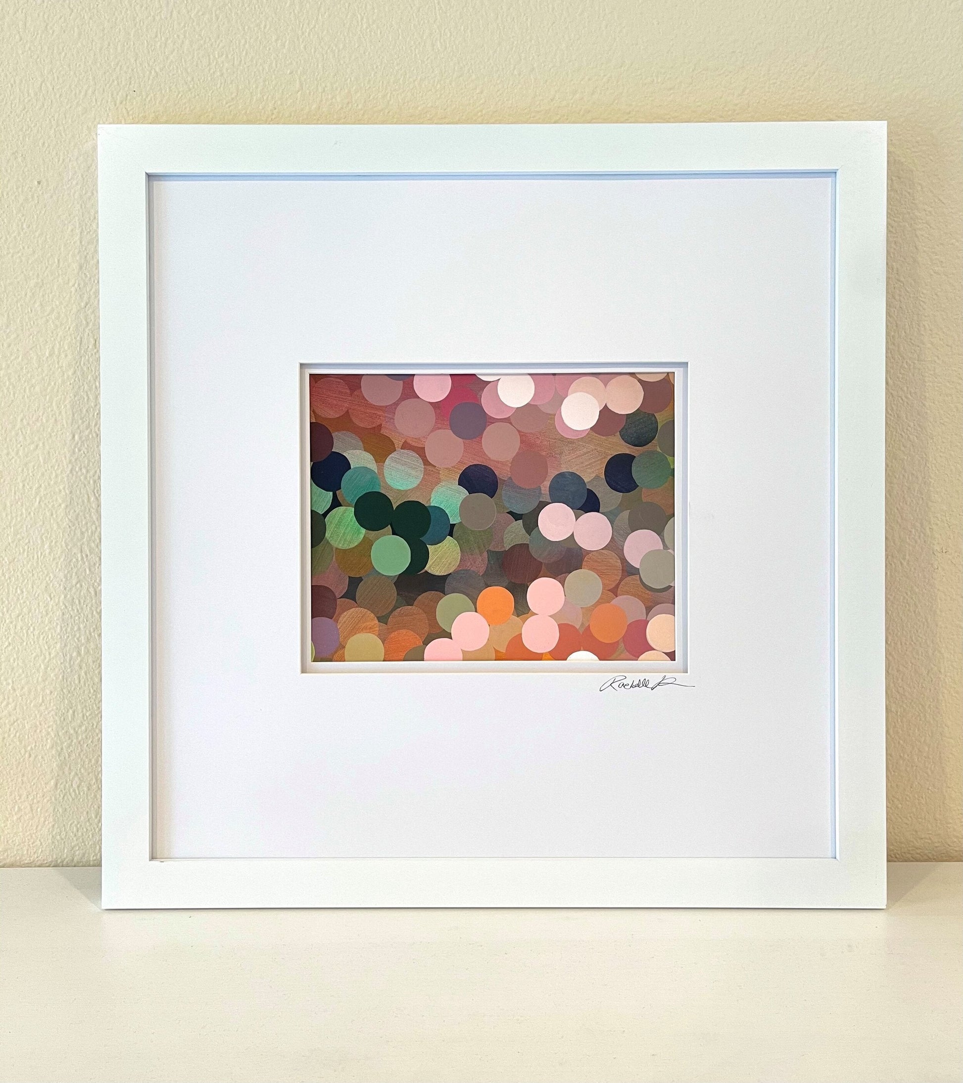 10 years ago, in the throes of my new role as mother, this series was inspired by my teeny, tiny babes. Like a kid with a new box of crayons, I began to play. Layer after layer, each painting became a sort of prayerful meditation. There were strong parallels between the patience cultivated from endless cycles of diaper changing, laundry and feeding, as with painting circle after circle on canvas.