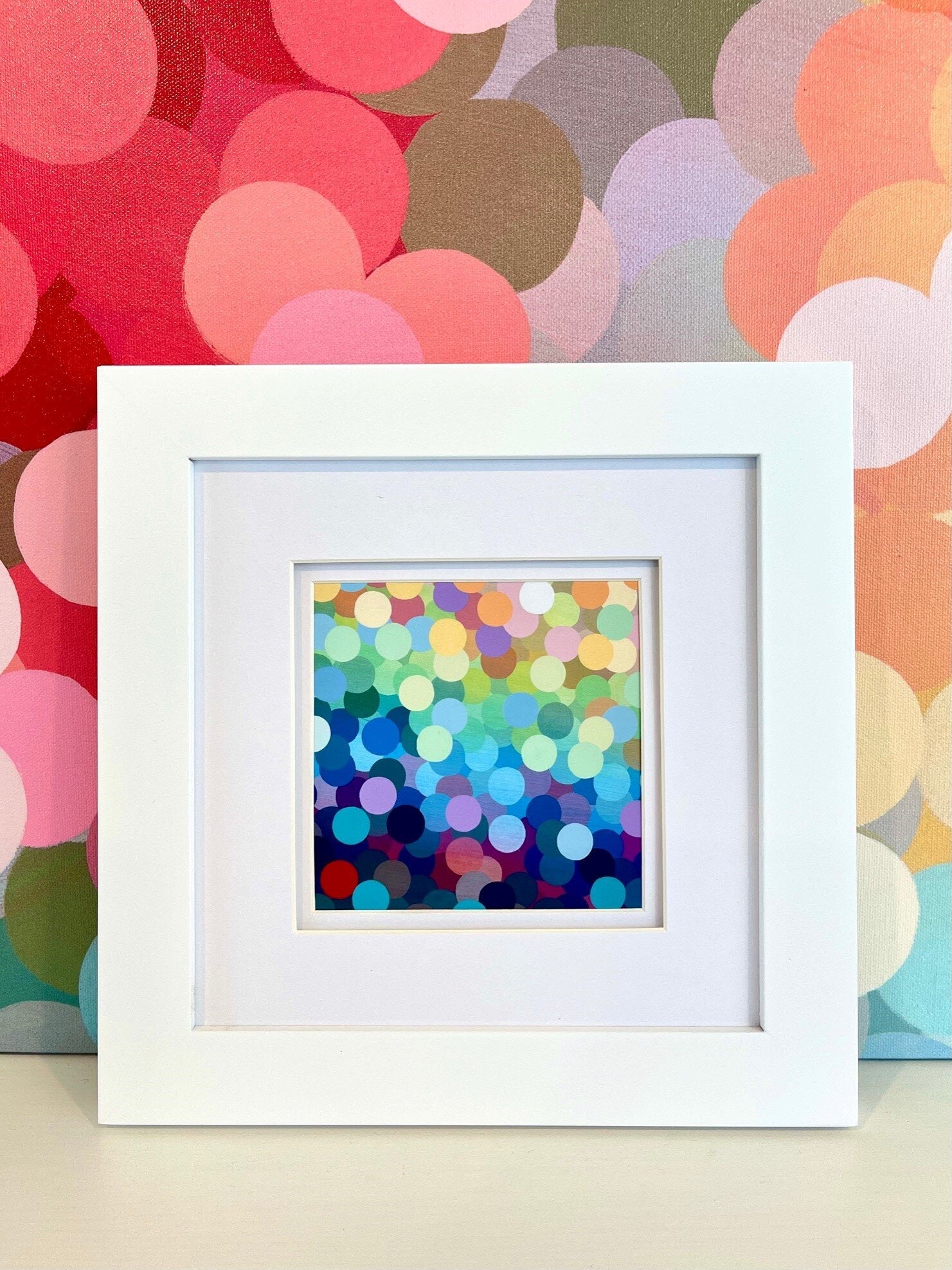 10 years ago, in the throes of my new role as mother, this series was inspired by my teeny, tiny babes. Like a kid with a new box of crayons, I began to play. Layer after layer, each painting became a sort of prayerful meditation. There were strong parallels between the patience cultivated from endless cycles of diaper changing, laundry and feeding, as with painting circle after circle on canvas.